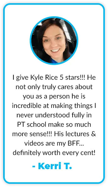 The Clinical Starter Pack is a self-paced NPTE training course with highly engaging lectures, cheatsheets, and podcast episodes. The goal of the clinical starter pack is to give students a realistic but effective daily assignment. Each student should seek to complete a lecture, cheatsheet, and podcast episode each day.